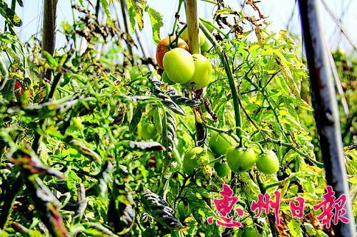 惠州市惠阳区农业局农业专家叶玉平在周一一大早,就驱车到平潭、良井察看农作物受灾情况。叶玉平说,青椒、马铃薯、西红柿、木瓜等作物较不耐寒,从走访的几个村来看,这些作物都有不同程度的冻伤,如有30%左右的青椒冻伤,甜玉米也大概是这个比例。按照估算,全区约有1.08万亩蔬果有不同程度的冻伤,至于损失程度,目前还不好估算。