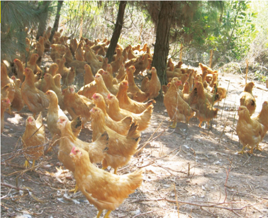 特征特性:岭南黄鸡3号配套系具有节粮、高产、生活力强等特点,父母代公、母鸡均为正常体型,羽速为慢羽,含胡须髯羽,羽色纯黄一致;66周龄入舍产蛋量172枚。商品代肉鸡性成熟好,体型短而紧凑,肉质风味佳。商品代公鸡84日龄上市平均体重1200克,料肉比3.00:1;母鸡120日龄上市平均体重1400克,料肉比3.80:1。全期公、母鸡平均饲养成活率96%以上。岭南黄鸡3号配套系已推广至华南、华东的优质鸡主产区,且推广范围逐年扩大,年提供父母代100万套,商品代1500万只。