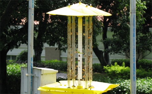 广州市果树科学研究所根据南亚热带名优水果示范园面积大、水果品种多,一年四季均有果树开花结果、新梢吐现,为各种病虫害的发生发展提供了有利条件,因而出现病虫害发生特别严重的情况,于2000年经科技局立项,开展了《南亚热带名优水果示范园病虫综合防治研究》科技攻关项目。该项目经几年研究,首先查清了示范园内各种果树的病虫种类,掌握了10种主要果树的病虫发生规律。并采用了以农业防治为基础、大面积种植藿香蓟保护天敌、利用黑光灯诱杀害虫、果实套袋等一系列生物防治、物理防治措施为主的综合防治方法,把各种病虫为害率控制在6.3%以下,取得了显著的经济效益、社会效益和生态效益。项目于2002年通过了成果鉴定,专家一致认为该项目有较高科学性、实用性和创新性,达到国内先进水平,并建议继续完善综防技术和扩大推广应用。
