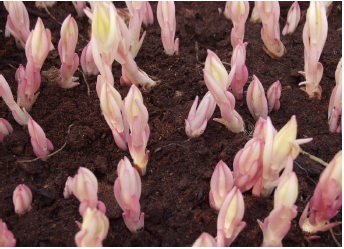 注意事项: 冷库催根促芽时注意保持基质湿润, 东方型百合二代球利用时要严把二代种球关。