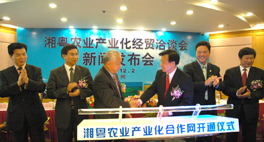 湘粤两省农业厅领导共同开启了湘粤农业产业化合作网