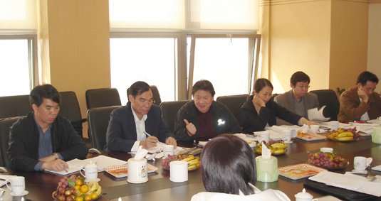 调研组在东莞市听取市农业局的汇报,并召开肥料生产厂家参加的座谈会。