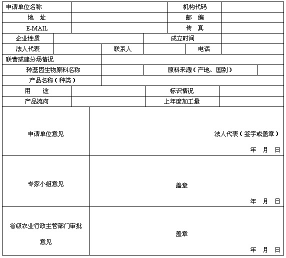 (一)农业转基因生物加工许可证申请表(见附件);