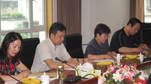图为我厅人事处处长蔡泽辉在作工作汇报