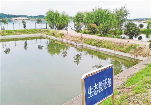 湖南省岳阳县胜奇养殖场废弃物无害化处理系统的生态验证池。