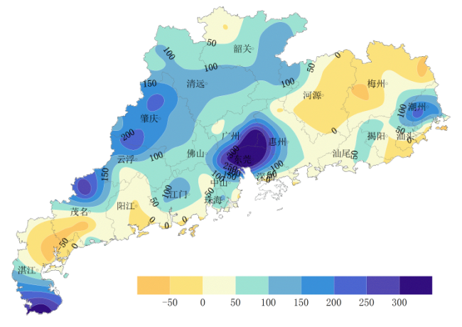 上周(11月13~19日),全省平均气温21.1℃,较常年同期偏高2.0℃,其中南部大部、东北、中部局部地区21.0~24.3℃,其余大部分地区17.4~21.0℃(图1)。平均日照时数9.1小时,较常年同期偏少7成多。周内全省平均累积降水量21.1毫米,较常年同期显著偏多近7成,其中西北、中部大部、潮州、汕头和雷州半岛局部地区偏多5成~3.4倍(增城3.9倍、东莞5.1倍),西南局部、东南局部、东北、西北偏北地区偏多1~5成,其余大部分地区正常到偏少1倍(图2)。目前,全省晚稻已经成熟,大部分地区已完成收晒工作;秋花生已经成熟收获;荔枝处于冬梢生长期;春植蕉处于营养生长期。上周气温偏高,日照显著偏少,降水偏多,多雨寡照天气不利于小部分地区成熟晚稻的收晒归仓,但降水充足利于冬种工作的开展。旬末受强冷空气影响,大部分地区气温骤降,但对冬种作物影响不大。综合评价上周农业气象条件较好。