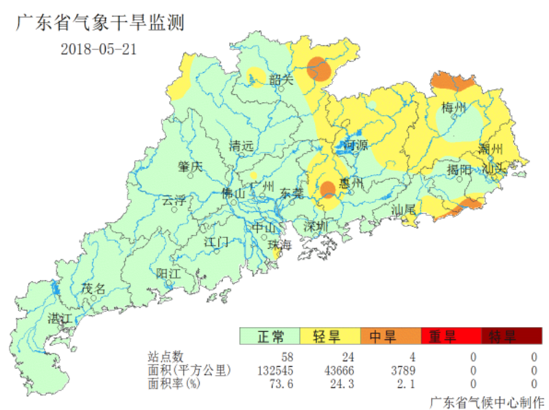图3 5月21日广东省气象干旱分布图