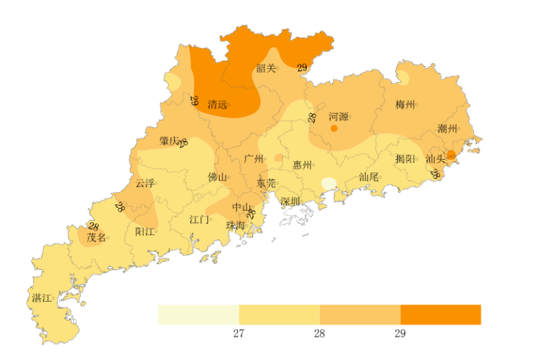 预计,受低压槽控制,20日,粤东、珠三角地区多云有中雷雨局部暴雨,其余地区多云有雷阵雨局部大雨。21~23日,中南部地区多云有中雷雨局部暴雨,其余地区多云间晴有雷阵雨局部大雨。24~25日,受季风低槽影响,我省有一次中到大雨局部暴雨的降水过程。