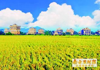浮月村的稻田与碉楼构筑美景,是农耕文化与侨乡文化交融的例证。 苏照良 摄