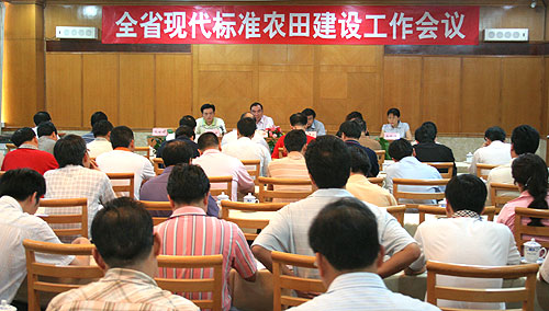 省农业厅蔡汉雄副厅长在会上就建设现代标准农田明确了目标任务和建设标准。他表示,从今年起至2010年,全省每年将建设现代标准农田125万亩,4年建成现代标准农田500万亩。在此基础上逐步推进现代标准农田建设,计划用10年左右的时间,将基本农田保护区内规模连片并争需改造的1000多万亩中低产田全部建成“田块方格化、灌溉硬底化、道路网络化、管护责任属地化、监督管理信息化”的现代标准农田。