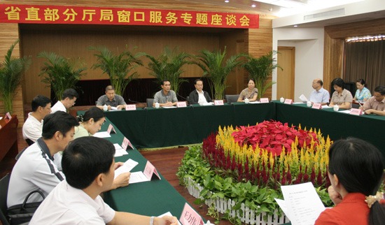 9月6日,省直部分厅局窗口服务专题座谈会在省农业厅召开。在省委组织部副部长、省直机关工委书记罗东凯同志带领下,省直机关工委纪检监察专员林冠玉、宣传处副处长曹青,省卫生厅、省民政厅、省劳动保障厅、省交通厅、省水利厅、省科技厅、省外经贸厅、省地税局、省国税局、省环保局、省林业局、省质量技术监督局、省食品药品监督管理局、省知识产权局、省海洋与渔业局、省安全生产监督管理局、省新闻出版局、省国土资源厅、广州出入境边检总站等厅局(单位)领导和党委办负责同志,以及南方日报、羊城晚报记者一行30多人,来到我厅检查指导窗口服务工作,参观了我厅行政许可办理中心,并在厅六楼会议室召开了窗口服务专题座谈会。厅党组成员、副厅长余俭娥代表厅党组致辞,对省直机关工委领导和与会代表莅临我厅检查指导表示热烈欢迎和衷心感谢。厅党组成员、纪检组长、机关党委书记张小沙代表我厅,介绍了我厅“以服务三农为重点,创建优质便民服务窗口,促进农业农村和谐发展”工作情况。厅党委办主任陆国煌、办公室调研员屈源泉参加了座谈会。
