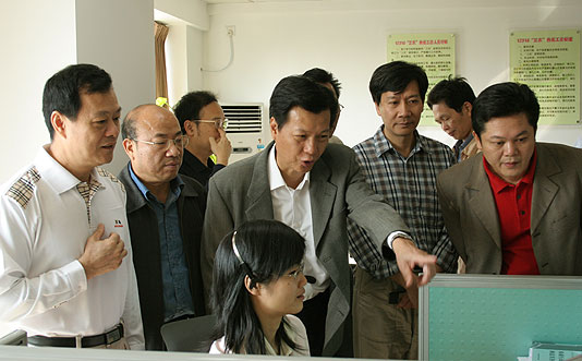 图为省农业厅林果先副厅长(右)和办公室何秀古主任为广东省“12316三农热线”揭幕