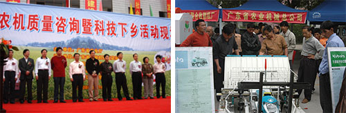 为了提高农民科学识别能力,让农民买到放心农机具,加强农机产品质量监督,严禁“假、冒、伪、劣”产品流入市场,保证了广东省农业机械化事业健康发展,保护广大农民的利益。由广东省农业厅主办、省农业机械鉴定站、茂名市农业局承办的农机质量监督咨询暨科技下乡现场会,3月14日在茂名市茂南区金塘镇召开。该次现场会以宣传农机质量、普及科学知识为主题。现场会目的是为农民解答选购、使用和鉴别假冒伪劣农机产品,当发生农机质量纠纷时如何进行投诉和保护自己的合法权益。现场会通过专家进行农机质量知识、法律常识、购买农机宣传知识和农机生产经销企业进行产品使用与维护的知识咨询,提高农民防劣打假意识、安全意识和增强维权的法律观念。