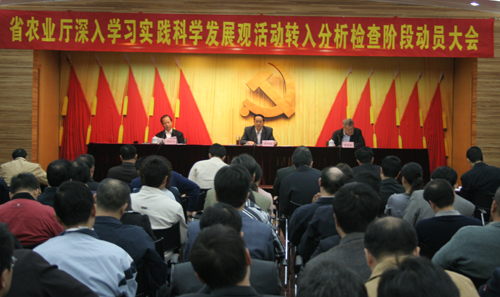 谢悦新同志在进行分析检查阶段工作动员部署中强调:学习实践活动分析检查阶段是在学习调研的基础上,从思想层面进入实践层面的重要阶段,主要任务是按照“重在总结经验教训、重在完善发展思路”的要求,在学习调研的基础上征求意见,找准问题,分析原因,明确方向,拿出对策。分析检查阶段的工作,既涉及领导班子集体又涉及领导干部个人,既要分析现在又要评价过去,既要总结经验又要吸取教训,涉及面比较广,政策性比较强,我们必须按照省委第一批学习实践活动转入分析检查阶段工作会议精神,按照汪洋书记对分析检查阶段的工作提出的要求,高标准严要求、一丝不苟地抓落实,不断深化解放思想学习讨论活动和前一阶段开展学习调研的成果,为整改落实阶段的工作奠定基础,为贯彻落实科学发展观打牢思想基础、工作基础,进一步把学习科学发展观的成效转化为推动科学发展的坚强意志、谋划科学发展的正确思路、领导科学发展的实际能力、促进科学发展的政策举措。要通过搞好分析检查,推进“三农”工作科学发展,进而为推进我省“三促进一保持”作出贡献。