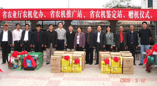 3月12日下午,在厅党组成员、机关党委书记张小沙同志、厅副巡视员潘雪芬同志的带领下,农机化办、农机鉴定站、农机推广站党支部在紫金县龙窝镇举行了“赠送农业机具仪式”,将一批适合山区作业的旋耕起垄机、耕整机、电动喷雾器等农机送到城乡党支部“一帮一”结对共建村——紫金县龙窝镇黄田村、庆丰村和公柘村。接受赠机的三个村党支部书记、村委会负责人代表村民对我厅农机化办、鉴定站、推广站党支部表示深深感谢,他们表示,在当前春耕大忙之际,赠送农民急用实用的农机具,将为当地提升农业机械化水平、促进农民增收起到积极作用。