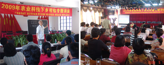 5月12日,在陂面镇科技下乡活动中来自仲恺农业工程技术学院的郑慧明教授对当地特色淮生产业从栽培技术上作了专题讲座,参加讲座的有来自当地淮生种植户及妇女种植能手达180多人,咨询现场也异常踊跃,专家们贴心为群众解决在生产中遇到的问题,参加咨询群众达2000多人。在阳东县塘坪镇、阳西县塘口镇和海陵区海陵镇的活动现场也非常热闹,专家们并结合当地特色农业对柑桔栽培技术及马铃薯栽培技术作了专题讲座。阳江市委组织部还专门把本次科技下乡活动的各类专题技术讲座拍摄录影,作为在全市广大农村进行宣讲。通过这次下乡活动,为广大农民解决了生产技术难题,培训了一大批农民,掀起了阳江地区夏季农业科技下乡热潮,对促进阳江现代农业的发展具有重要意义。