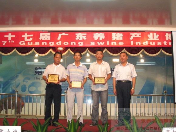 农业部种猪质检中心检测室主任樊福好介绍了二十七期种猪测定概况并宣读了本期送测种猪获奖企业名单。获得本期种猪测定第三名的企业是:河源市兴泰种猪有限公司(杜洛克173)、茂名市正田原种猪场(长白459)、广东华农温氏畜牧股份有限公司水台种猪场(大白228)。获得本期种猪测定第二名的企业是:华美(惠州)畜牧科技有限公司(杜洛克170)、广东瑞昌食品进出口有限公司(长白493)、广东华农温氏畜牧股份有限公司(大白230)。获得本期种猪测定第一名的企业是:华美(惠州)畜牧科技有限公司(杜洛克171)、广州力智农业有限公司(长白447)、茂名市正田科技开发有限公司原种猪场(大白279)。