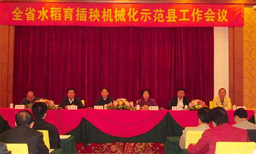 为突破水稻育插秧机械化瓶颈,2009年广东省启动了建设20个水稻育插秧机械化示范县项目。为总结各示范县的项目建设成效,加速推进全省水稻育插秧机械化发展,2010年1月6日,广东省农业厅在廉江市召开全省水稻育插秧机械化示范县工作会议,总结2009年20个水稻育插秧机械化示范县取得的成果和经验。农业厅副巡视员潘雪芬出席会议并对示范县提出期望,“要更加积极发挥示范带动作用,力争2010年每个示范县新增插秧机30台以上,新增机插秧面积5000~10000亩,并带动全省2010年确保新增1500台插秧机,力争新增2000台,完成机插秧面积100~120万亩,机插率力争突破4%。”