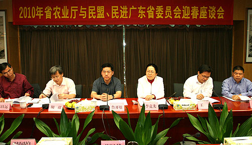 昨天(3月1日)下午,广东省农业厅邀请对口联系的民主党派民盟广东省委员会、民进广东省委员会领导和专家召开迎春座谈会,通报2009年广东省农业农村经济工作的情况和2010年的三农工作重点,征求民主党派对全省“三农”工作的意见建议。民盟广东省委员会专职副主委兼秘书长李竟先、民进广东省委员会副主委鲁开垠等12位领导和专家受邀出席了座谈会。省农业厅蔡汉雄副厅长及厅有关处室、事业单位负责同志参加了座谈会。