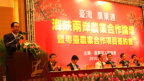 8月20日下午,广东省政府在台南市举行“粤台农业合作论坛暨合作项目签约会”,展示粤台农业合作成果、展示及品尝台湾农产品,签订粤台农业交流合作框架协议、粤台农业企业采购农产品中长期意向协议和农产品采购合同。谢悦新厅长在会上介绍广东现代农业及粤台农业合作情况。 >>详情