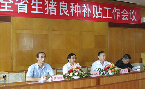 陈福林同志强调,各地要高度重视,开拓进取,狠抓各项关键措施,努力开创生猪良种补贴工作新局面,切实落实好今年的生猪良种补贴工作:一是加强领导,落实各项工作职责。各项目县要充分认识做好生猪良种补贴工作的重要意义,务必要从思想上重视起来,统一认识,狠抓落实,明确各级良种补贴工作责任人和工作职责,做到“组织到位、资金到位、服务到位、工作到位”;二是强化监管,严禁骗取、套取项目资金。各项目县要严格按照《财政部、农业部关于印发〈生猪良种补贴资金管理暂行办法〉的通知》(财农〔2007〕186号)和《广东省生猪良种补贴项目实施细则(暂行)》的要求使用、管理中央生猪良种补贴资金,实行专帐管理,专款专用,严禁骗取、套取、挤占、挪用项目资金;三是加强建设,保障精液和种公猪质量。各地要强化种公猪站的建设和监督管理,督促其规范生产经营,使用统一的实施国家生猪良种补贴项目精液产品标识;四是加强宣传,全面、准确、深入地宣传中央关于生猪良种补贴政策的有关精神,保证项目实施公开透明,增强养殖场户参与生猪品种改良的主动性。