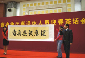 2011年1月25日,省农业厅举办离退休人员迎春茶话会,厅长谢悦新率领厅领导班子全体成员及各处室、事业单位主要负责人向曾为广东“三农”事业做出贡献的离退休人员拜年,与广大离退休同志欢聚一堂,喜迎新春,并致贺辞。