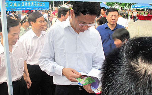 今年5月12日是全国第三个“防灾减灾日”。5月9日上午,广州市人民公园中摆满了防灾减灾宣传图板,由广东省减灾委员会主办,省民政厅、省科协、广州市人民政府承办的广东省暨广州市“防灾减灾日”宣传周活动启动仪式和减灾知识现场咨询活动在这里举行,众多市民现场咨询避震、防洪、重大动物疫病防治和农业灾害防御等防灾减灾知识。副省长刘昆出席启动仪式并讲话。