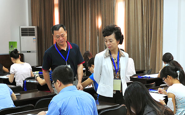 省农业厅程萍副厅长(右)亲临比赛现场和考场监考。