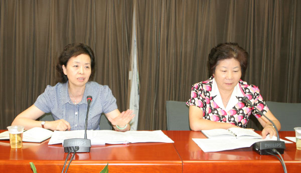 程萍副厅长(左)出席会议并讲话,潘雪芬副巡视员(右)主持了会议。