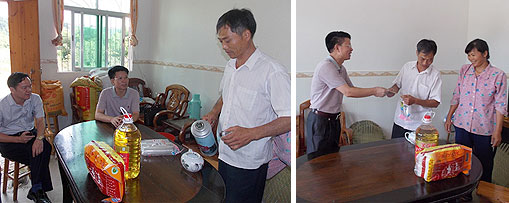 陆国煌总农艺师还到贫困户刘奕锋家中进行了慰问,了解其生产与生活状况,鼓励他积极参与扶贫“双到”,抓住机会,勤劳奋斗,在脱贫的基础上早日实现奔康致富。