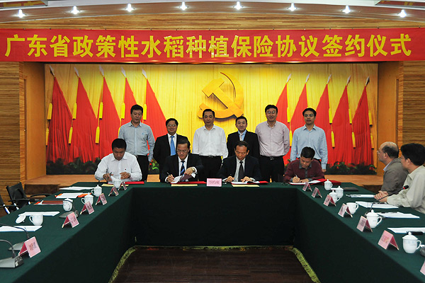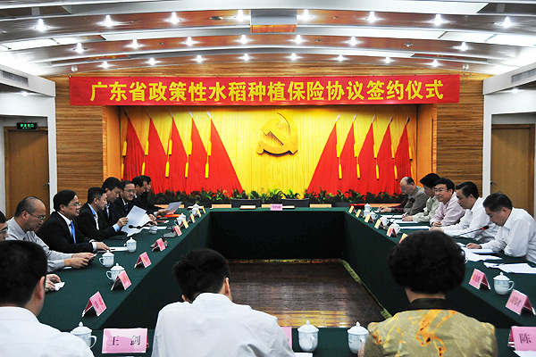 4月26日下午,广东省农业厅与人保财险广东分公司等三家保险机构签订水稻保险经办协议。广东省农业厅厅长郑伟仪,广东保监局领导和人保财险广东分公司、阳光农业相互保险广东分公司、中华财险广东分公司等主要领导及有关部门负责人出席了签约仪式。