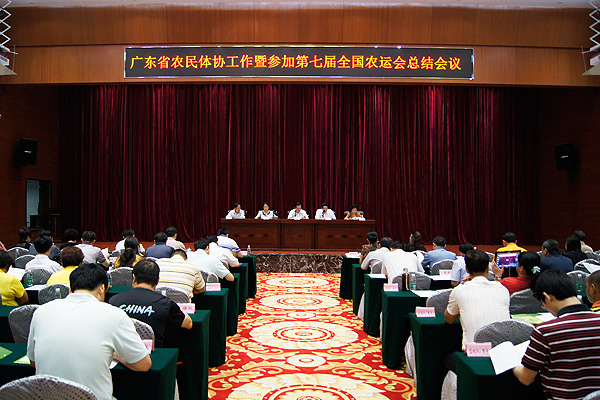 5月20日,广东省农民体协工作暨我省参加第七届全国农运会总结会议在广州召开,省农业厅厅长、省委农办主任郑伟仪,省政协常委、省农民体协主席谢悦新,省体育局副局长、省农民体协副主席曾晓红,省农业厅巡视员、省农民体协副主席余俭娥、省农民体协常务副主席梁鸿庆等领导出席了会议。会议由曾晓红副主席主持,郑伟仪厅长和谢悦新主席作了重要讲话,余俭娥副主席宣读了《关于表扬奖励我省参加第七届全国农运会运动员的通报》和《关于表扬奖励我省参加第七届全国农民运动会作出突出贡献单位的通报》。省体育局、省农业厅、省财政厅、省林业厅、省海洋与渔业局有关处室负责人及全省地级以上市农业局、体育行政部门、农民体协相关负责人参加了会议。