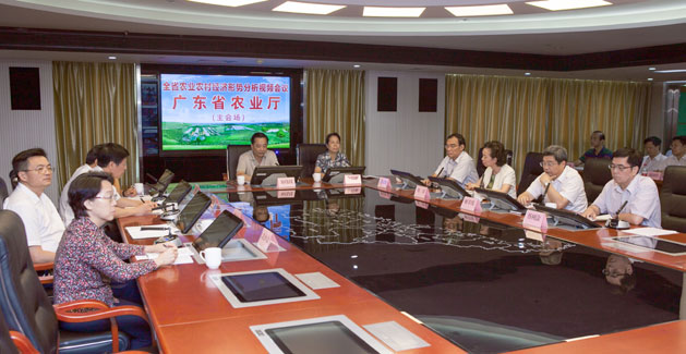 8月28日,广东省农业厅召开全省农业农村经济形势分析视频会议,贯彻落实全国农业厅局长座谈会和全省上半年经济形势分析会以及省委农村工作领导小组会议精神,全面分析当前广东省农业农村经济形势,研究部署下一步工作,努力确保顺利完成全年农业农村工作各项任务。郑伟仪厅长出席会议并作讲话,在家厅领导及各处室主要负责人出席了会议,各地市农业局、兽医局主要负责人在分会场收看了会议。