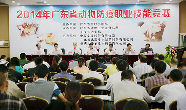 10月22-23日,由广东省畜牧兽医局主办,省动物卫生监督总所、韶关市农业局承办,中牧实业股份有限公司、广东永顺生物制药股份有限公司、肇庆大华农生物药品有限公司协办的2014年广东省动物防疫职业技能竞赛在韶关市隆重举行。广东省农业厅副厅长、省畜牧兽医局局长郑惠典,韶关市政府副巡视员许俊杰,省畜牧兽医局副局长罗道栩以及省畜牧兽医局有关处室、省动物卫生监督总所、省农业特有工种技能鉴定站、韶关市农业局等单位的领导和各地级以上市、顺德区动物疫病预防控制机构领队及选手近200人参加了活动,全省各地通过层层比赛选拔出的66名动物防疫人员参加了竞赛。