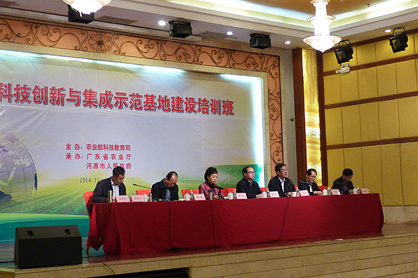 本次培训班由农业部科技教育司主办,广东省农业厅、河源市政府承办。培训班旨在引导各创新基地把“制定科学的发展规划”、“建立高效的运行机制”、“建立优秀的专家团队”、“无缝对接技术用户”、“集成示范轻简适用高效的综合技术”作为重点建设任务,有效解决科研投入“分散化”、立项立题“碎片化”、成果推广“低效化”问题;要按照“体系工作法”,搭建起政府与农业科教单位、推广单位以及各类农业企业、专业合作社、家庭农场、农业社会化服务体系等新型经营主体协同攻关、合力推广的工作平台,全面提升农业科技支撑引领产业发展水平。