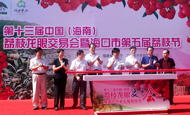 5月15日,由广东、福建、广西、海南等4省(区)农业厅,海口市政府、海南农垦联合主办的第十三届中国(海南)荔枝龙眼交易会暨海口市第五届荔枝节在海口市开幕。广东省农业厅副巡视员陈华富出席了开幕活动。本次会展的主题是:科技品牌、品质安全、休闲时尚、网络营销、合作共赢。主会场分别举行了开幕活动、经贸签约、“荔枝王”擂台赛、拍卖义捐、产业推介、专家讲座等7项重点活动;分会场举办了荔枝(龙眼)水果专卖一条街、电商网销平台体验、果园观光旅游、“舌尖上荔枝”手机拍拍、电商营销培训和“三色三美、美丽琼山”专题宣传等6项专业活动。与会代表还实地参观考察了海南省荔枝龙眼生产基地、加工企业和专业合作社等。