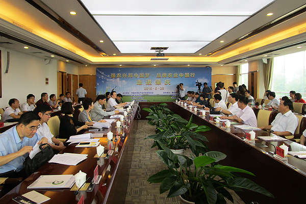 5月26日,由中国优质农产品开发服务协会、广东省农业厅、肇庆市政府、中国农产品市场协会、农民日报社主办的“强农兴邦中国梦·品牌农业中国行——走进肇庆”活动在肇庆新区举行。中国优农协会会长朱保成,中国农产品市场协会会长张玉香,广东省农业厅副厅长程萍、市场处程文章处长等有关领导和专家出席活动。国内多位知名农业专家到会进行交流,并为肇庆农业转方式、调结构和创品牌建言献策。