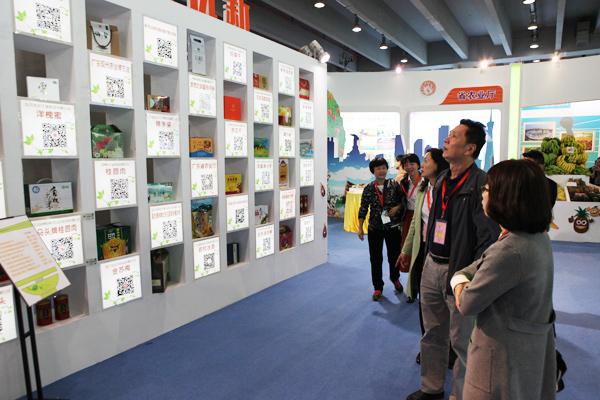 这届农博会最大的亮点:无处不体现“互联网+现代农业”的概念。除了专门设置了农业互联网信息化工程、农业电商等展区外,展销区也处处体现“互联网+”的元素。现场参展观众踊跃用手机参与现场互动,就连老年人也争着扫起了“二唯码”。