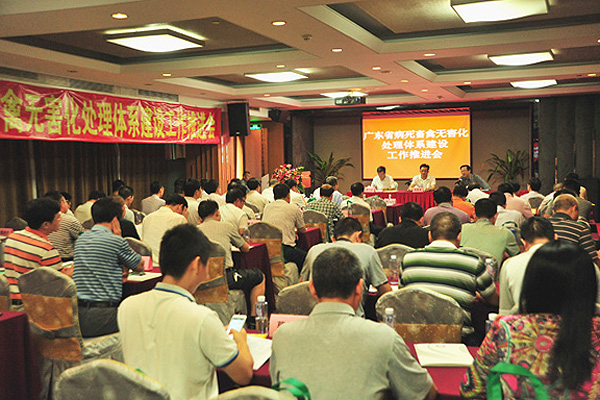 自省政府批准投入2亿元用于10个病死畜禽无害化处理中心示范工程建设后,兽医处立即组织召开了病死畜禽无害化处理体系建设工作推进会,通过实地考察、技术讲解、研讨交流等形式,拓宽工作思路,推进项目落实。会后积极跟踪督促各地项目建设,摸清了各地工作动态,针对无害化处理场选址动物防疫风险评估有关问题印发通知对各地进行明确的指导,编制了《病死畜禽无害化处理机制建设相关文件材料汇编》,制定了《广东省农业资源循环利用工程中心(畜禽无害化处理厂)项目实施时间计划表》,及时通报各地进展情况并抄送当地政府,同时建立了无害化处理中心示范项目建设定点联系制度,成立了专家组,加强对各地的督促指导,大力推动示范项目建设。