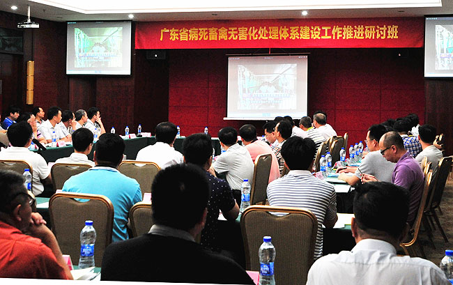 会议首先组织观看了广东新闻频道8月7日《政协委员》栏目关于当前广东省病死畜禽无害化处理体系建设工作的专题报道,并邀请省建筑设计院环保所原效凯所长作题为《PPP模式的有关政策与操作指引》的专题培训。随后,珠海、中山、高州、四会、蕉岭、惠东等工作较好的市县结合当地无害化处理体系建设情况作典型经验介绍,乐昌市、河源市灯塔盆地等各无害化处理示范项目和试点项目承担县分别介绍了项目建设进展,阳江市、汕头市等地积极发言,与会代表就无害化处理体系建设进行了深入研讨交流。