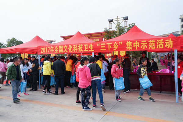 根据中央统一部署,为纪念红军长征胜利80周年,在长征途经的15个省(区、市)同步开展“2017年全国文化科技卫生‘三下乡’集中示范活动”。我省活动由省委宣传部、教育厅、农业厅、科技厅、文化厅、计生委、新闻出版广电局、省科协主办,韶关市委宣传部、南雄市委、市政府承办,12月20日,“2017年全国文化科技卫生‘三下乡’集中示范活动启动仪式”在韶关南雄市珠玑古巷中心广场举行。