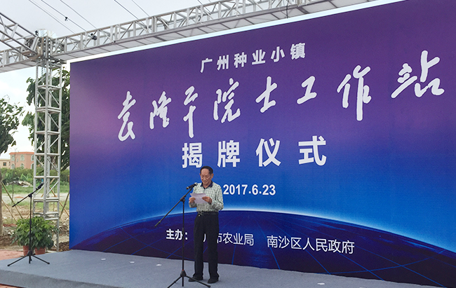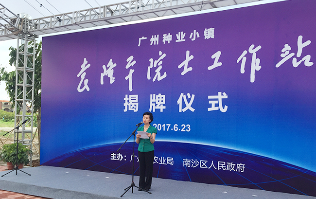 袁隆平院士在讲话充分肯定了广东省在国家超级稻示范推广中的重要地位,高度赞扬了广州市委市政府作出“打造国际种业中心,建设种业小镇”的决策部署,并表态,国家杂交水稻工程技术中心将以院士工作站为依托,致力开展产量达每公顷16吨的第五期超级稻育种计划,培养科技创新人才队伍,促进种业科技成果的产业化和国际化。