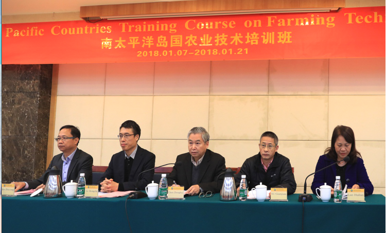 2018年1月9日,广东省农业厅在广州举行“南太平洋岛国农业技术培训班”开班仪式,省农业厅陈正辉副巡视员、省农业科学院易干军副院长、省外办对外协调处李宏志处长出席开班仪式并致辞。