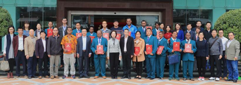 1月19日上午,由广东省农业厅主办、广东省农业科学院承办的“太平洋岛国农业技术培训班”在省农业厅举行结业典礼。来自巴布亚新几内亚和斐济两国农业部、农业研究所及农场的17名学员,省农业厅、省外办、省农科院,广东省良种引进服务公司的相关负责人共40人参加了结业典礼。省农业厅程萍巡视员、省农科院易干军副院长、省外办江玥副处长出席典礼并为学员颁发结业证书。